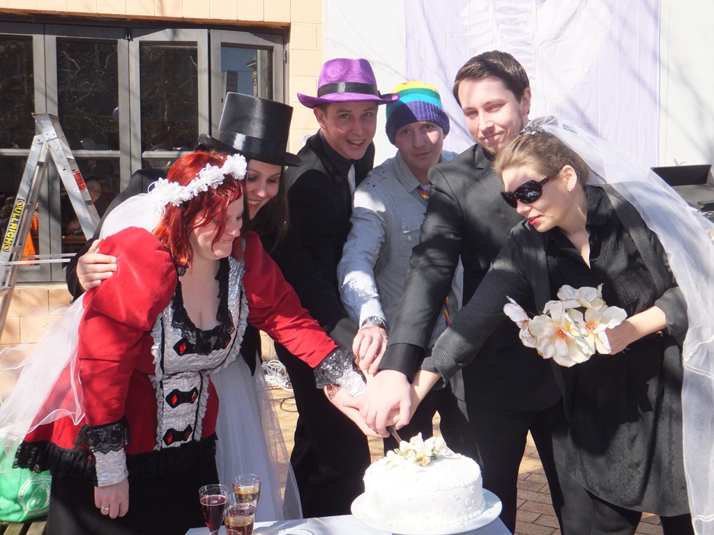 Couples danced to The Dixie Cups’ classic, Chapel of Love, before toasting over sparkling grape juice and cake. Volunteers circulated a petition to be sent to MPs, asking them to support Louisa Wall’s Marriage Amendment Bill.