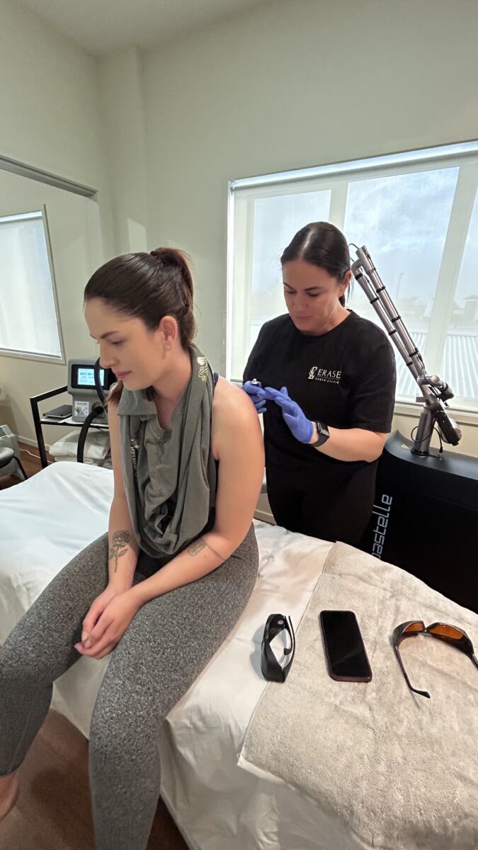 Shay Thompson (pictured above) was 19 when she got her first tattoo. It was a fairy on her left shoulder. But over the years she grew to disliking the placement, saying that it didn’t sit right when wearing singlets and strapped dresses. “The sessions have been tolerable and rewarding” mentioned Thompson, who is very much looking forward to having it removed fully in time for her wedding.