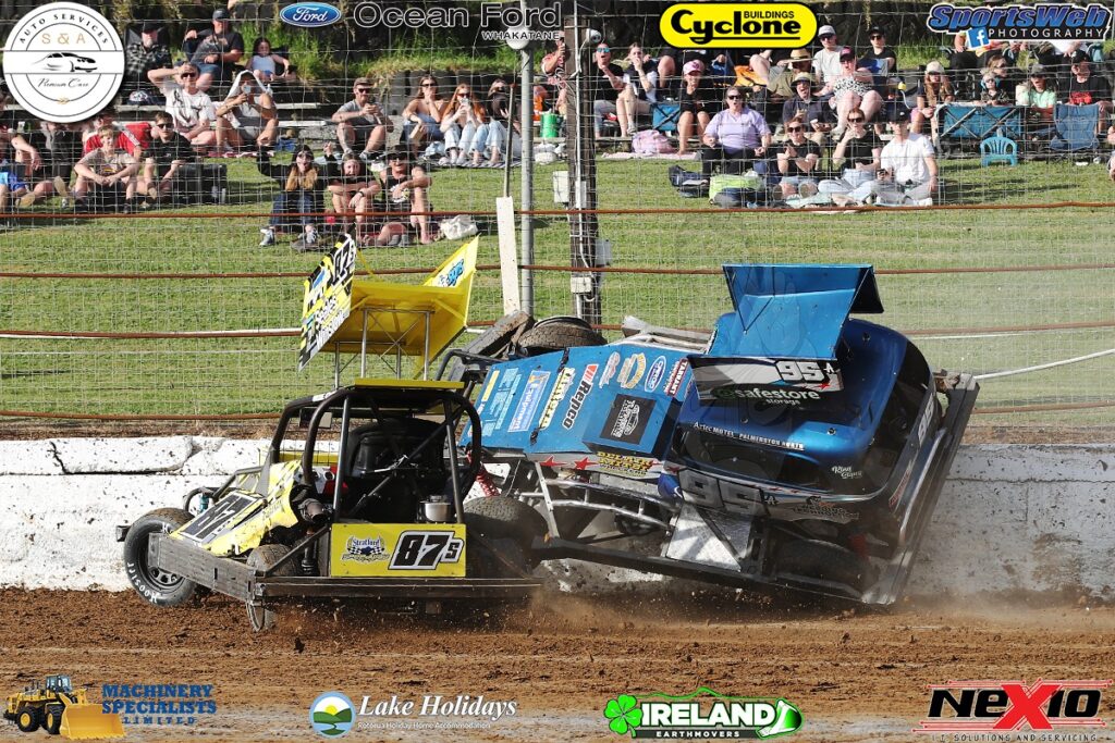 Auckland’s Codi Chatfield got off to a perfect start, he sliced and diced his way to pick up his team a first up win. Although, it wasn’t all good for the Auckland based side, 95a Gary Lonergan was put up the wall and suffered big damage which would mean his car wasn’t able to make the next race up.