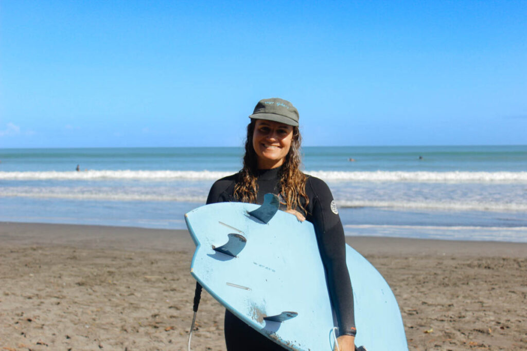Just a 10-minute drive away from Whāingaroa Raglan town centre, Ngarunui Beach is the place to relax or be active in many ways. One local who has a particular connection to Ngurunui is Nina Dunyach-Ramos, who came to Raglan 10 years ago and discovered her love for surfing.